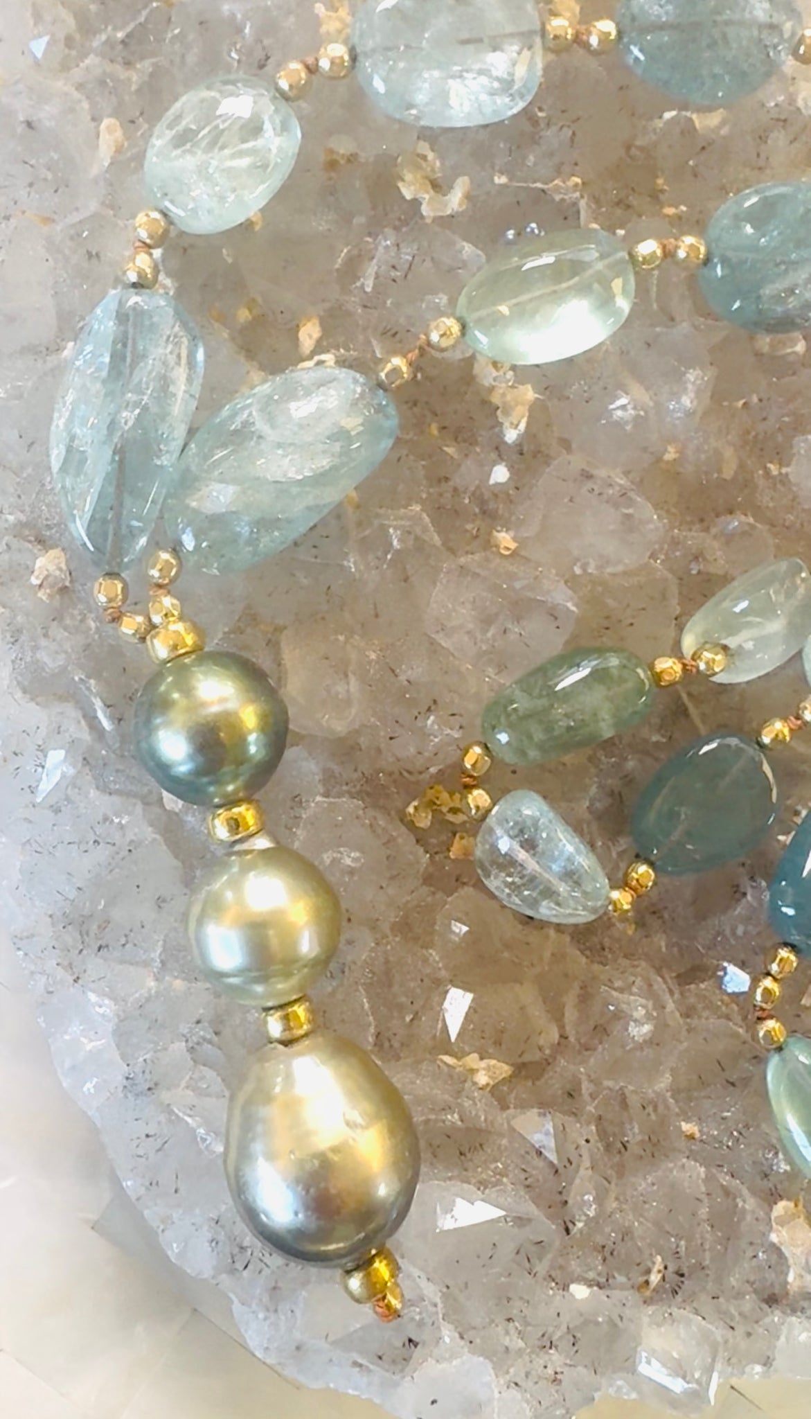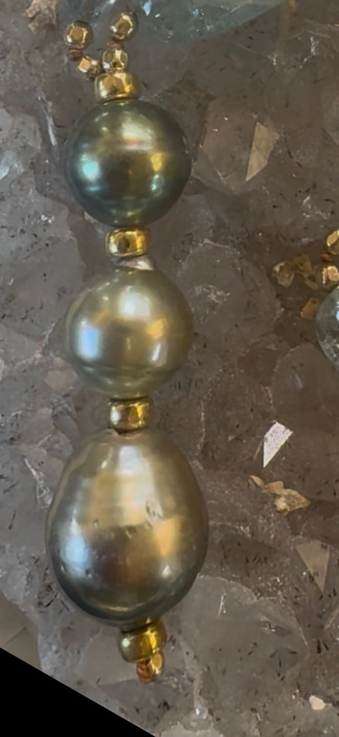 Unique one of a kind Tahitians pearls incredible aquamarine